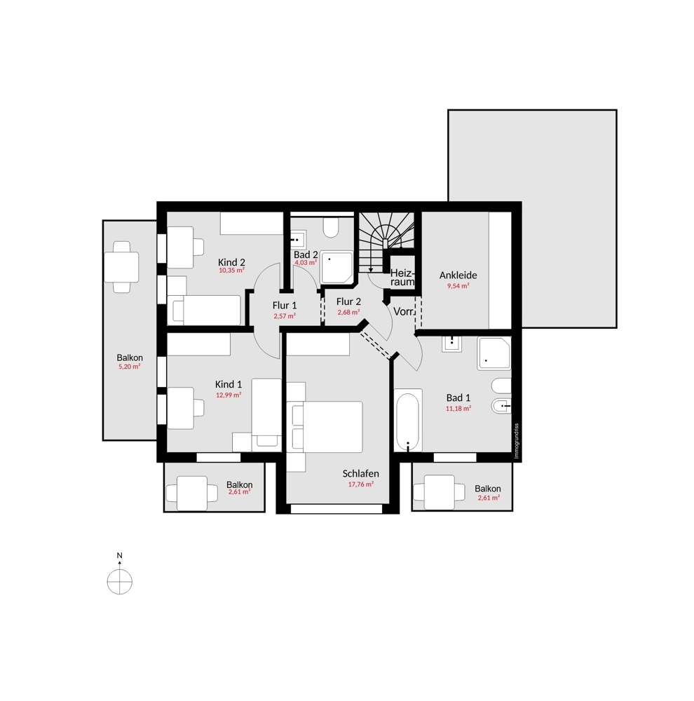 • Zwei Kinderzimmer mit Balkonzugang