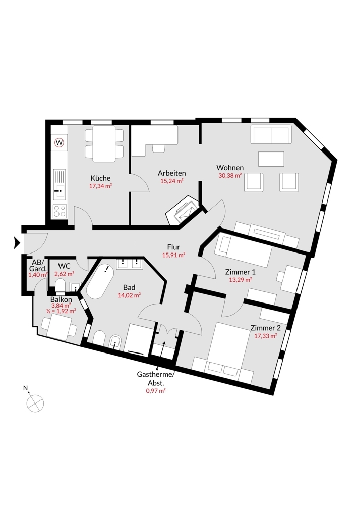 Um die Privatsphäre der derzeitigen Mieter zu wahren, werden an dieser Stelle keine Innenbilder der Wohnung gezeigt, die dargestellten Visualisierungen dienen der Veranschaulichung. Wir danken für Ihr Verständnis.