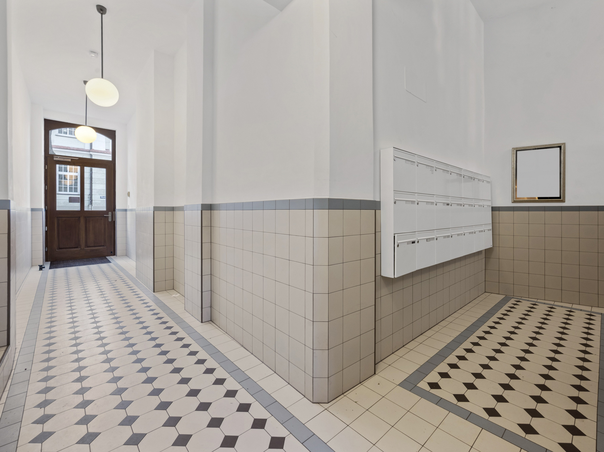 Repräsentativer und denkmalgeschützte Stilaltbau aus dem Jahr 1900. Besonders ins Auge fällt die kunstvoll gestaltete Fassade mit Sprossenfenstern und dekorativen Jugendstilelementen. Neben dem Entree mit kunstvollen Mosaikfliesen ist das historische Treppenhaus mit einem schmiedeeisernen Treppengeländer, Holzstufen und einem Lift ausgestattet. Das elegante Gebäude wurde im Jahr 2016 umfassend modernisiert und neu gestaltet, im Zuge dieser Maßnahme wurde die oberste Etage aufgestockt, sodass dort diese moderne Dachgeschosswohnung entstand.