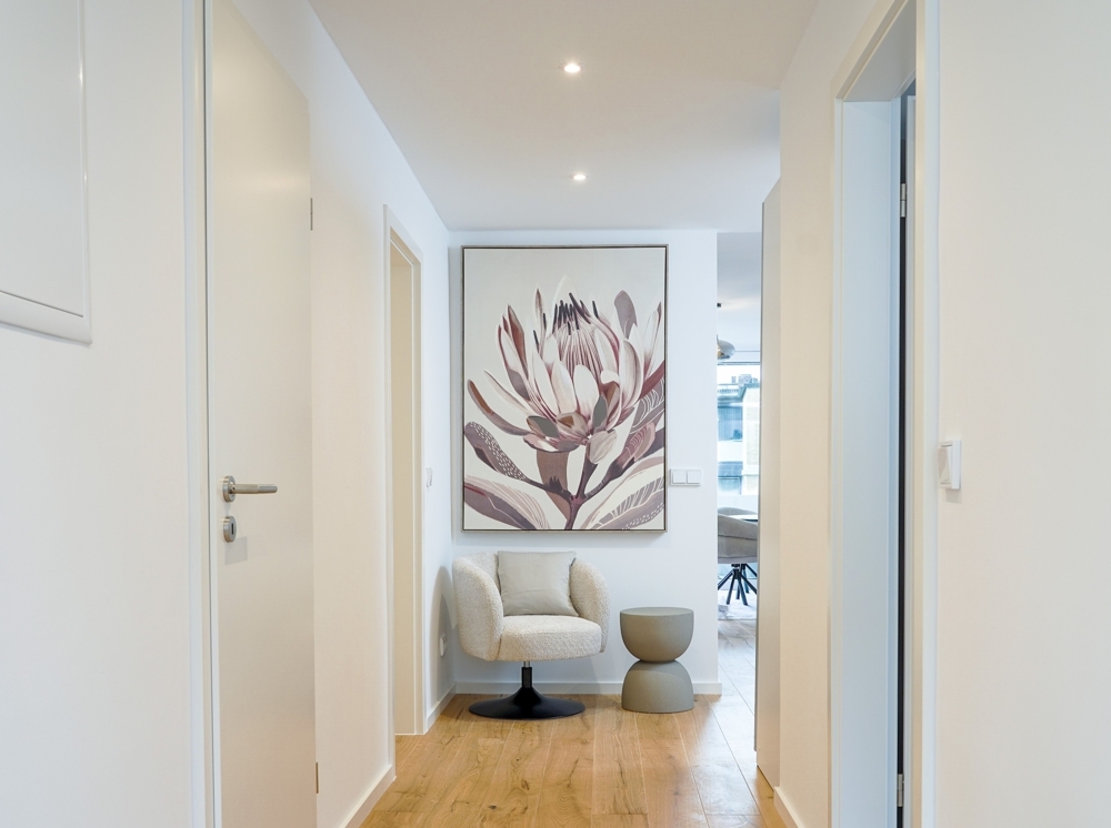 Helles, modernes Flair auf ca. 85,23 m² Wohn-/Nutzfläche mit flexibel gestaltbarer Raumaufteilung. Die Wohnung verfügt derzeit über 3,5 Zimmer und wurde kürzlich hochwertig saniert sowie vollständig und stilvoll möbliert. Die moderne Einrichtung schafft ein behagliches Wohngefühl und kann auf Wunsch übernommen werden. Die sonnige Südloggia zum Innenhof verleiht der Wohnung eine besonders angenehme Wohnatmosphäre und bietet den idealen Rückzugsort für entspannte Stunden im Freien.