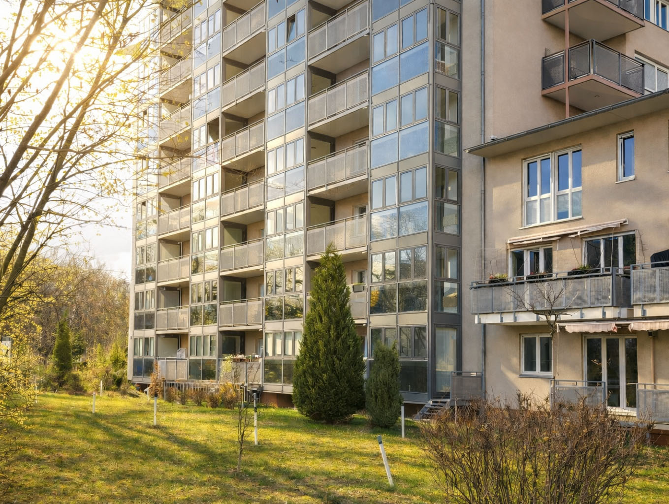 • Einbau neuer Brüstungen und Sicherheits-Wohnungseingangstüren in den Laubengängen