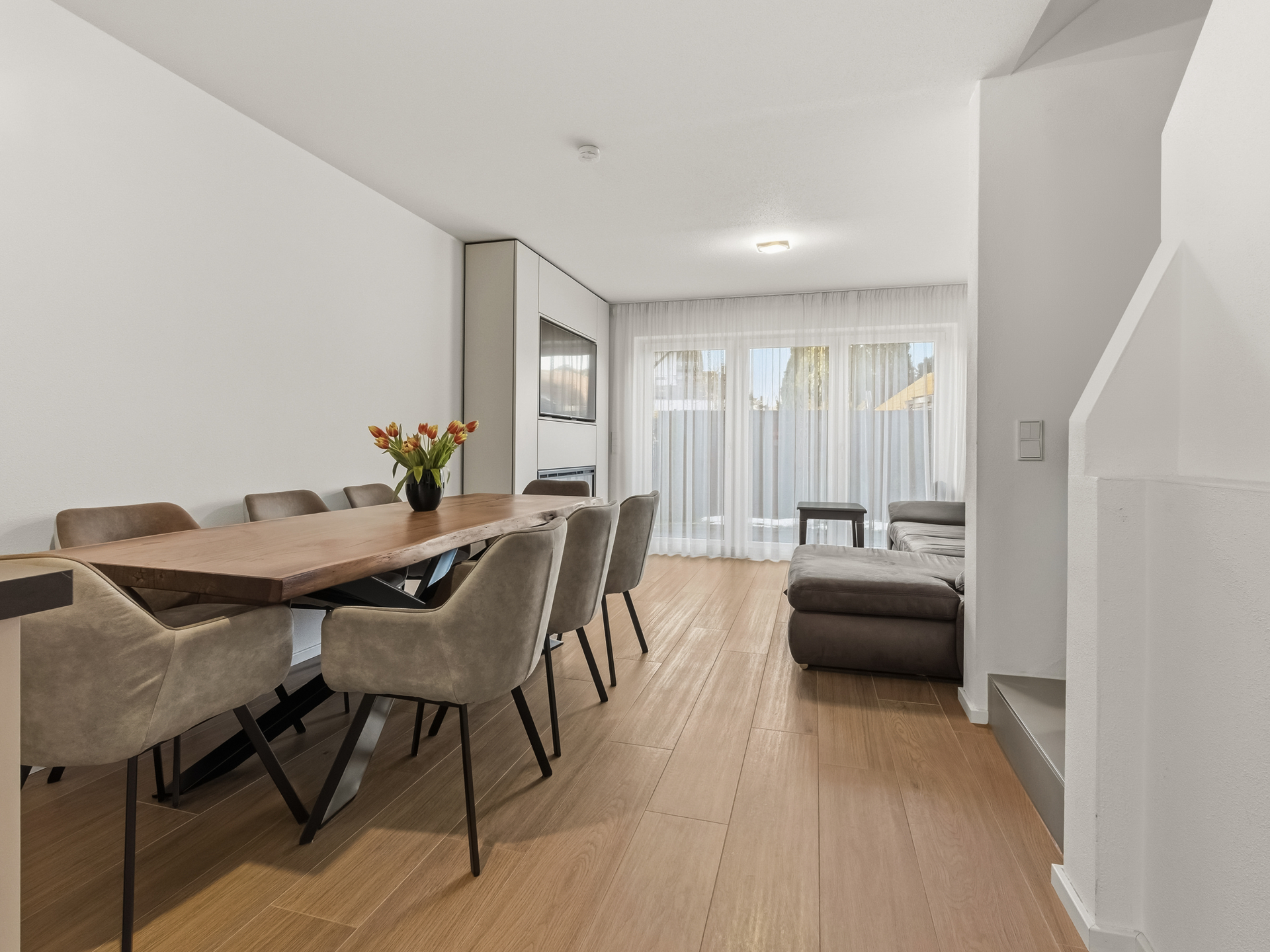 • Gemütliches Wohn-/Esszimmer mit bodentiefen Fensterfronten und Zugang zur Gartenterrasse