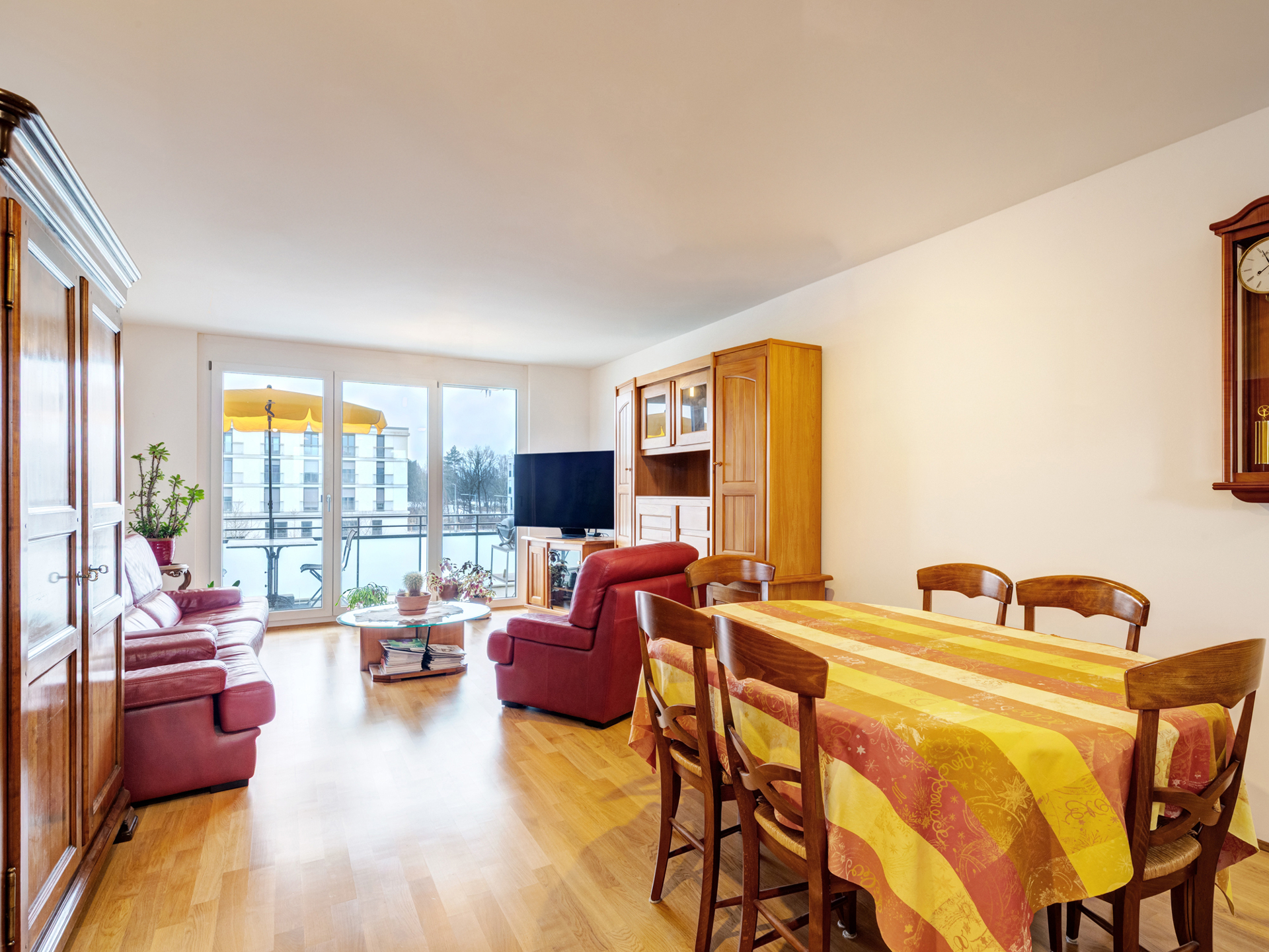 • Geräumiges Wohn-/Esszimmer mit bodentiefen Fensterfronten und Zugang zum Südbalkon