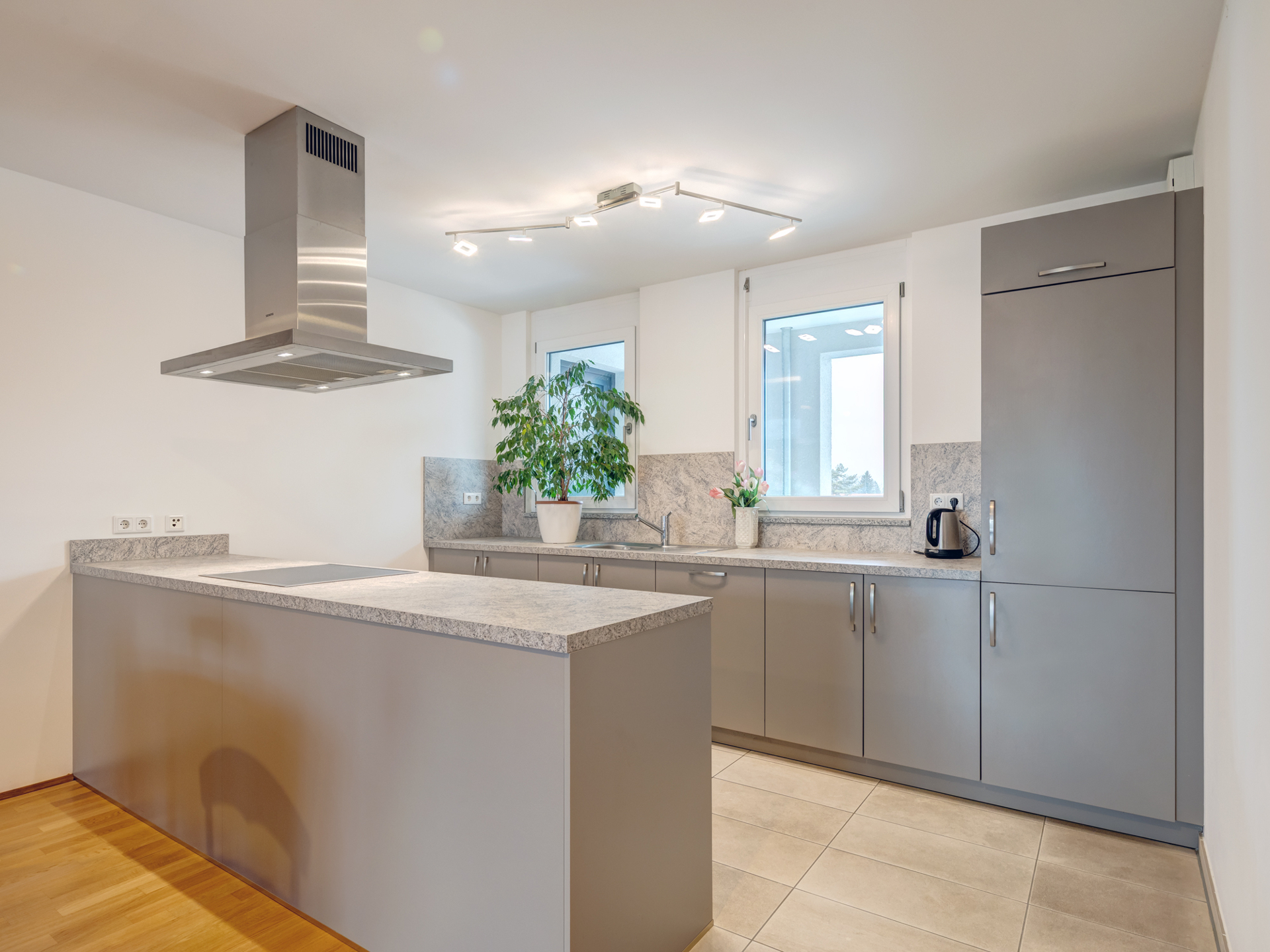 • Offen konzipierte Küche mit modernen Einbauten und Elektrogeräten namhafter Hersteller (Küche ist im Kaufpreis enthalten)